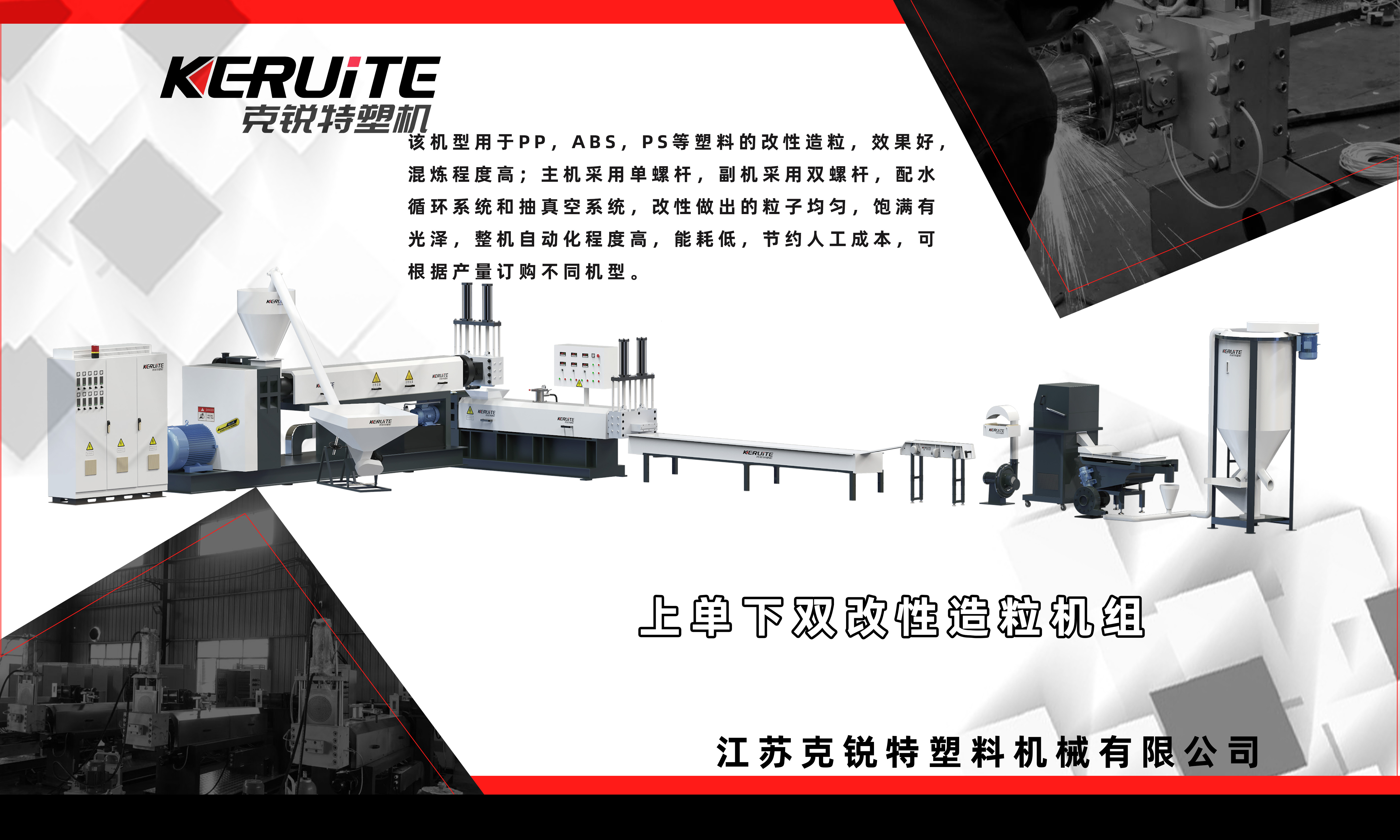 公司是一家生產(chǎn)各種規(guī)格的塑料顆粒機(jī),塑料造粒機(jī),廢舊塑料造粒機(jī),立式攪拌機(jī),塑料切粒機(jī)等多種塑料機(jī)械設(shè)備的技術(shù)先進(jìn)的廠家,造粒機(jī)結(jié)實(shí)有力 ,操作簡易,運(yùn)轉(zhuǎn)平穩(wěn)。不僅提供整機(jī),輔機(jī)相配套的產(chǎn)品零件,還提供易磨損的配件等;公司以雄厚的技術(shù)力量及一批專業(yè)技術(shù)人員,結(jié)合當(dāng)前國內(nèi)外同行的先進(jìn)技術(shù)研制出精工,高效的塑料輔機(jī)設(shè)備。克銳特機(jī)械立足于時代科技,以高水準(zhǔn)質(zhì)量品牌與國內(nèi)外客商共同進(jìn)步,共同發(fā)展。本公司位于齊梁故里,長江之畔中國歷史文化名鎮(zhèn)--孟河鎮(zhèn),歡迎國內(nèi)外用戶來公司磋商業(yè)務(wù),交流技術(shù),增進(jìn)友誼。本公司將一如既往,以高品質(zhì)的產(chǎn)品,及時快捷周到的售后服務(wù),熱情誠摯忠實(shí)地與廣大新老客戶共同走向成功。